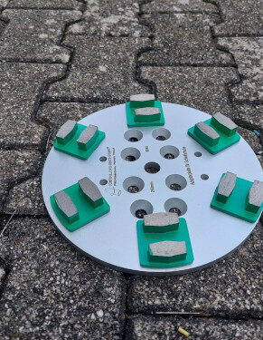 | Diamantschleifschuhe zur Bearbeitung von Beton,/ Estrichflächen z.B. bei Unebenheiten oder Fließenkleberrückständen | Farbe: grün (3 St. montiert) | 1,80 Euro / 1/10mm |